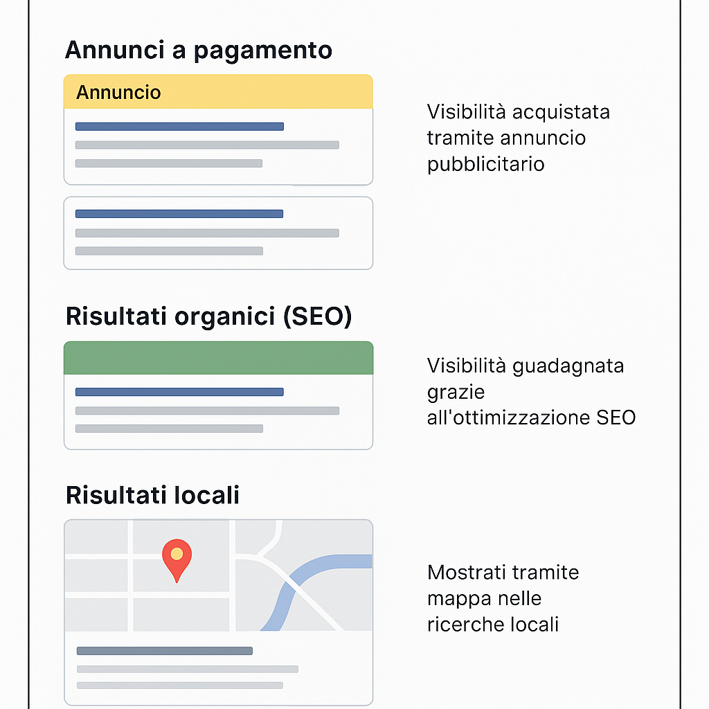 La SEO (Search Engine Optimization) è l’insieme di tecniche e strategie per far sì che il tuo sito venga trovato dai motori di ricerca senza pagare.