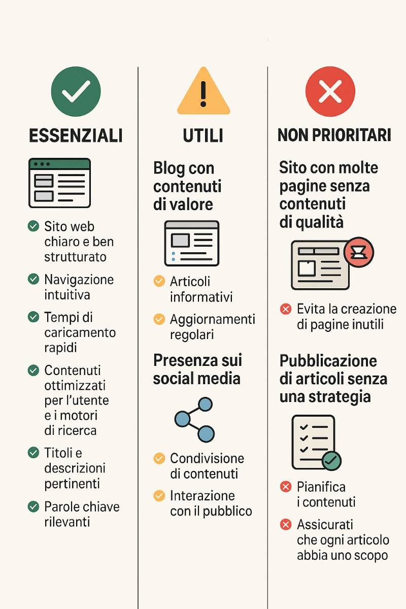 Non è necessario avere un sito con 1000 pagine o pubblicare articoli tutte le settimane. Quello che conta è che: